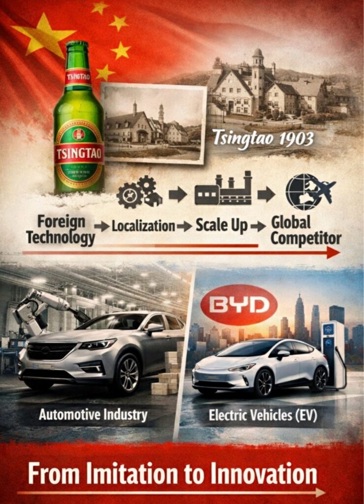 As with Tsingtao, early imitation masked what was really happening: systematic industrial learning.